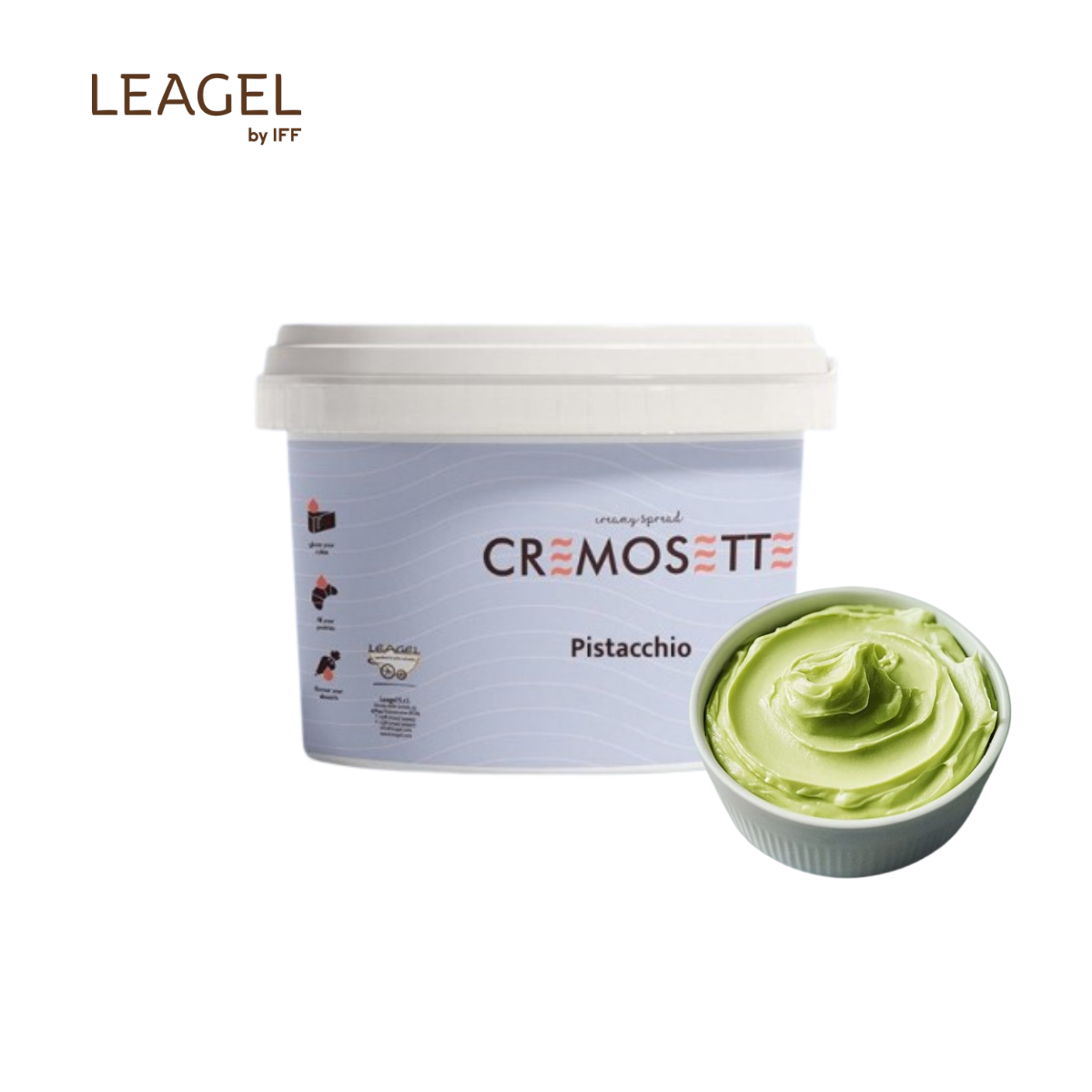 Cremosette pistachio Cremă profesională cu fistic, termostabilă, ideală pentru ganache, umpluturi și glazurare în patiserie și cofetărie. Cod: 241001 Ambalare: 5,5 kg