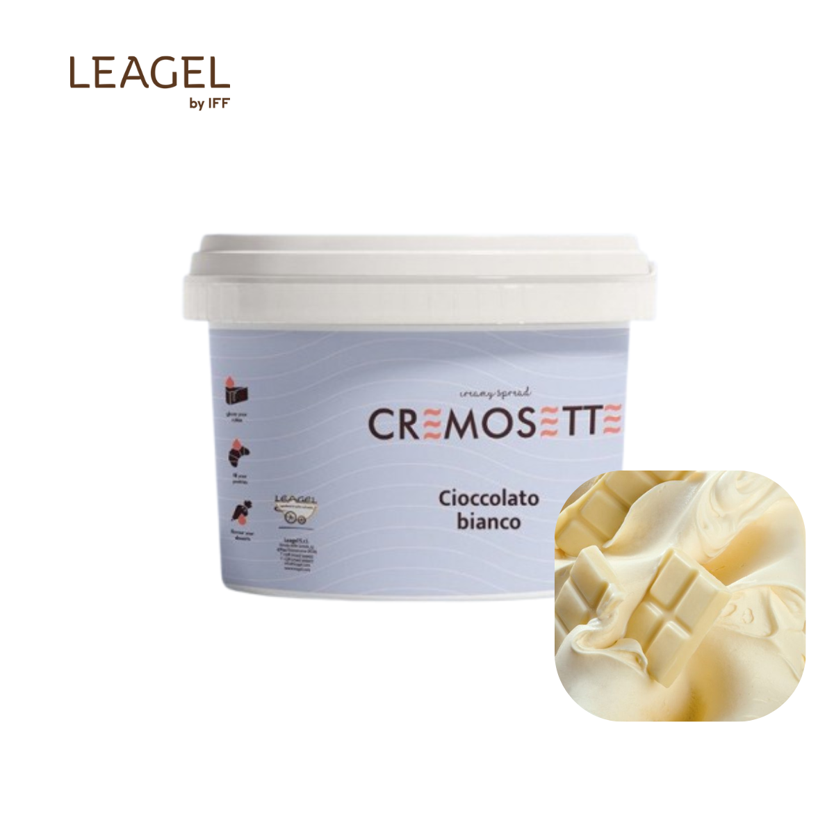 Cremosette white Cremă profesională de ciocolată albă, termostabilă, ideală pentru ganache, umpluturi și glazurare în patiserie și cofetărie. Cod: 240901 Ambalare: 5,5 kg