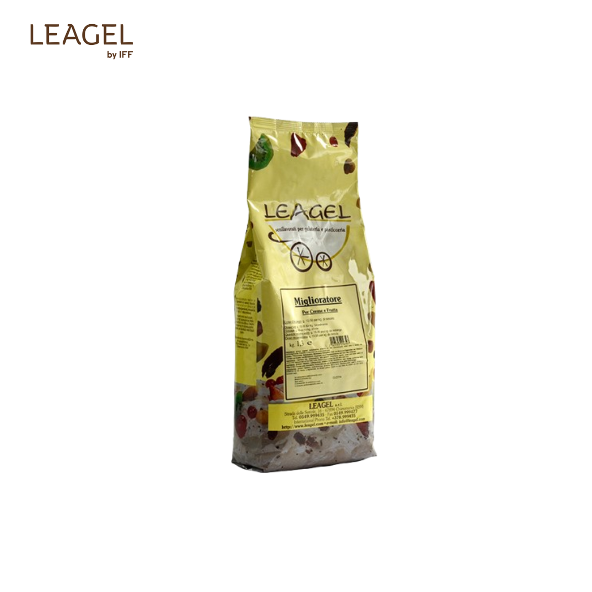 Supliment pentru Înghețată (bază lapte & bază fruct) Produs pudră destinat îmbunătățirii aromelor, cremozității, întinderii și stabilității în vitrină a gelato-ului. Dozaj: 10–30 g / 1 kg amestec Proces: Cold / Hot Cod: 141301 Ambalare: 1,3 kg