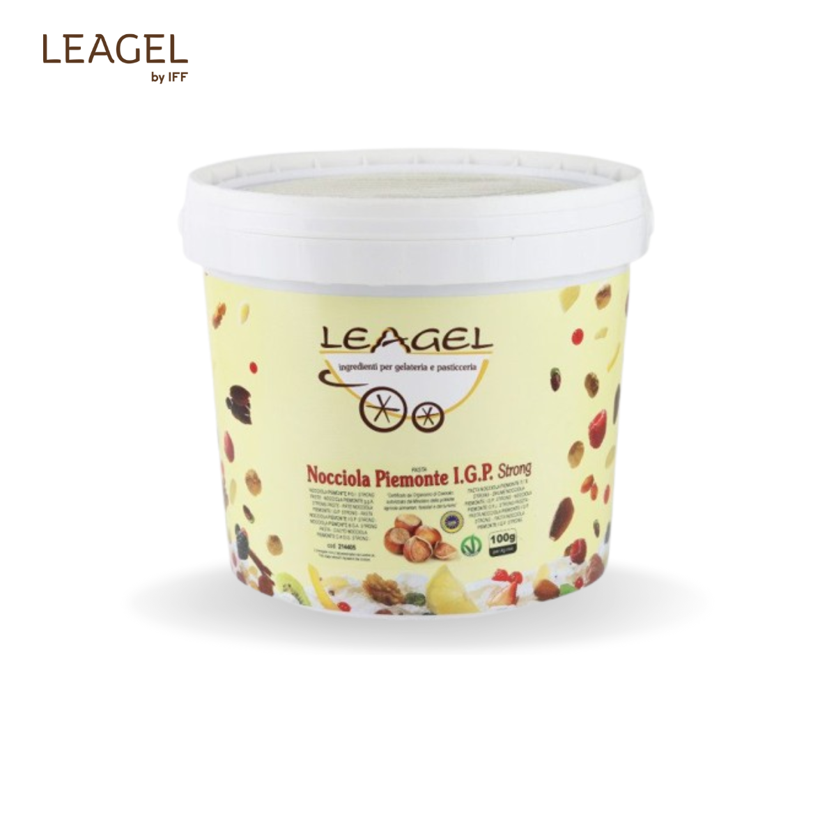 Pastă Nocciola Strong Pastă din alune de pădure Piemonte IGP, cu prăjire intensă pentru o aromă puternică și gust distinctiv. Potrivită pentru gelaterie și cofetărie. Dozaj: 80 g / 1 kg bază Cod: 214405 Proces: la rece/cald Ambalare: 5 kg