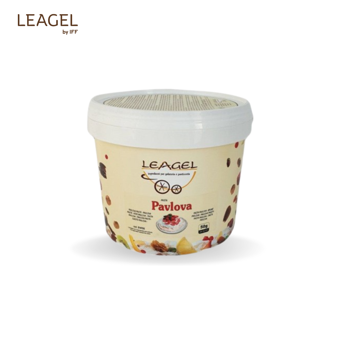 Pastă Pavlova Pastă inspirată de celebrul desert Pavlova, cu gust de bezea crocantă și note fructate. Potrivită atât pentru înghețată artizanală, cât și pentru cofetărie. Dozaj: 50 g / 1 kg bază Cod: 314705 Proces: la rece Ambalare: 3,5 kg