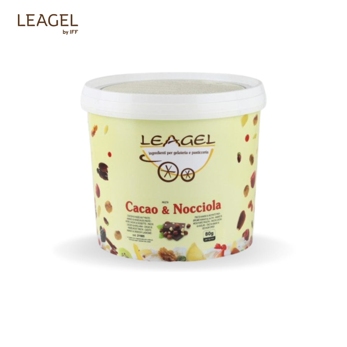 Pastă Cacao & Alune de Pădure Pastă echilibrată pe bază de alune de pădure și cacao, cu gust autentic de gianduja. Potrivită atât pentru înghețată artizanală, cât și pentru cofetărie. Dozaj: 80 g / 1 kg bază Cod: 211605 Proces: la rece Ambalare: 3,5 kg