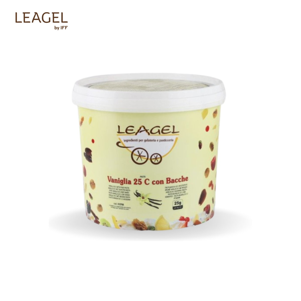 Pastă Vanilla 25C cu semințe de vanilie Pastă aromată, cu semințe naturale de vanilie, pentru un gust rafinat și autentic. Potrivită pentru aplicații profesionale în gelaterie și cofetărie. Dozaj: 25 g / 1 kg bază Cod: 312705 Proces: la rece Ambalare: 3,5 kg