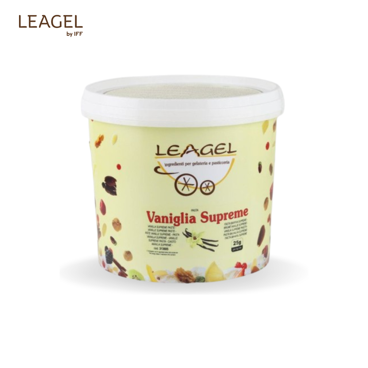 Pastă Vanille Supreme Pastă premium de vanilie cu note citrice și semințe naturale de vanilie, colorată doar cu ingrediente naturale. Ideală pentru gelaterie și cofetărie. Dozaj: 25 g / 1 kg bază Cod: 313605 Proces: la cald / la rece Ambalare: 3,5 kg