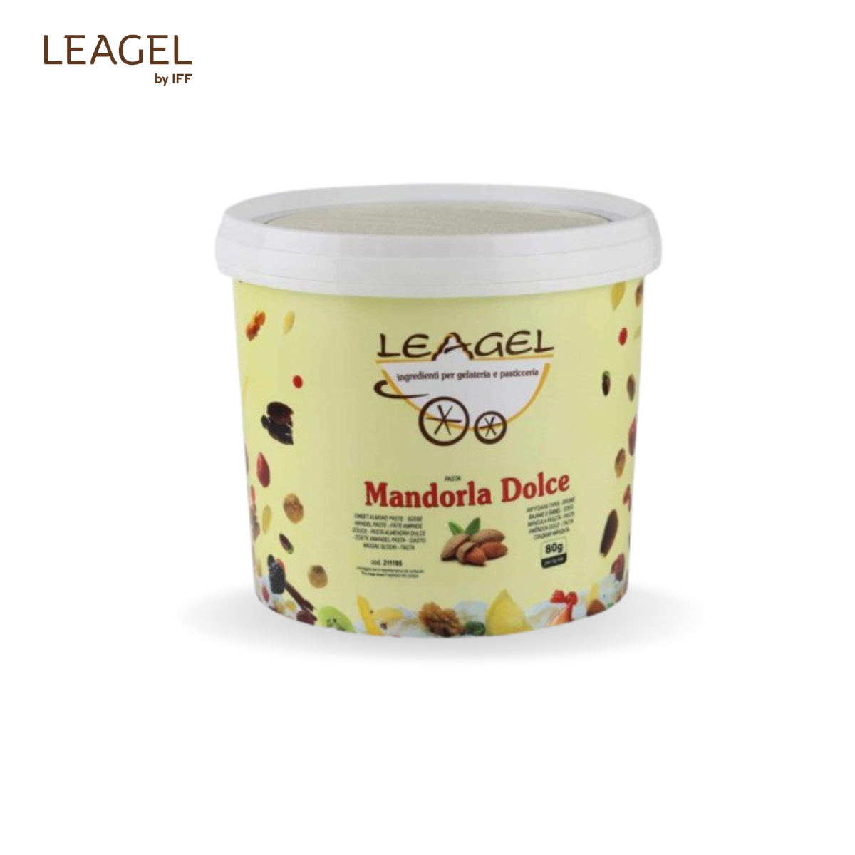 Pastă Migdale Dulci Pastă concentrată cu 70% migdale, pentru un gelato intens și cremos, cu gust autentic de migdale dulci. Potrivită pentru gelaterie și cofetărie. Dozaj: 80 g / 1 kg bază Cod: 211105 Proces: la rece Ambalare: 3,5 kg
