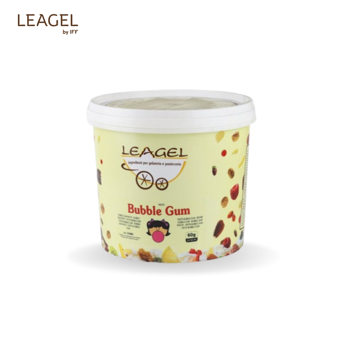 Pastă Gelato Bubble Gum Pastă cu aromă dulce de bubble gum și culoare roz intensă, preferată de copii. Dozaj: 60 g / 1 kg bază Cod: 310405 Ambalare: 3,5 kg