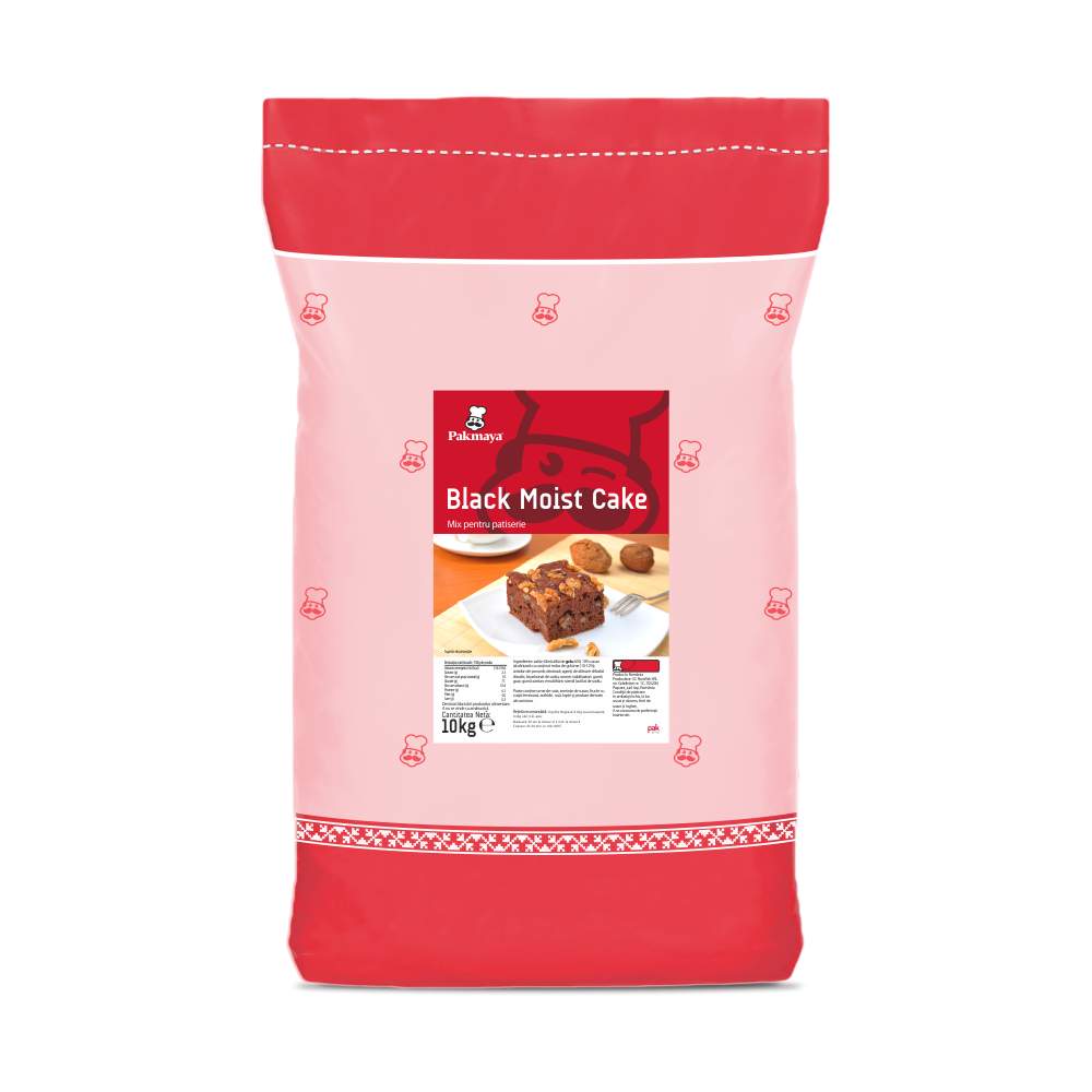 Black Moist Cake Mix profesional pentru prăjituri, blaturi și checuri cu textură moale și umedă, îmbogățit cu pudră de cacao. Ideal pentru negresă, brownie, lava cake sau foi de prăjituri. Produsul finit are gust plăcut de cacao, culoare uniformă, prospețime îndelungată (până la 30 zile ambalat) și poate fi congelat. Dozaj recomandat: 1 kg mix, 400 g ou proaspăt, 400 ml ulei, 200 ml apă Ambalare: sac 10 kg