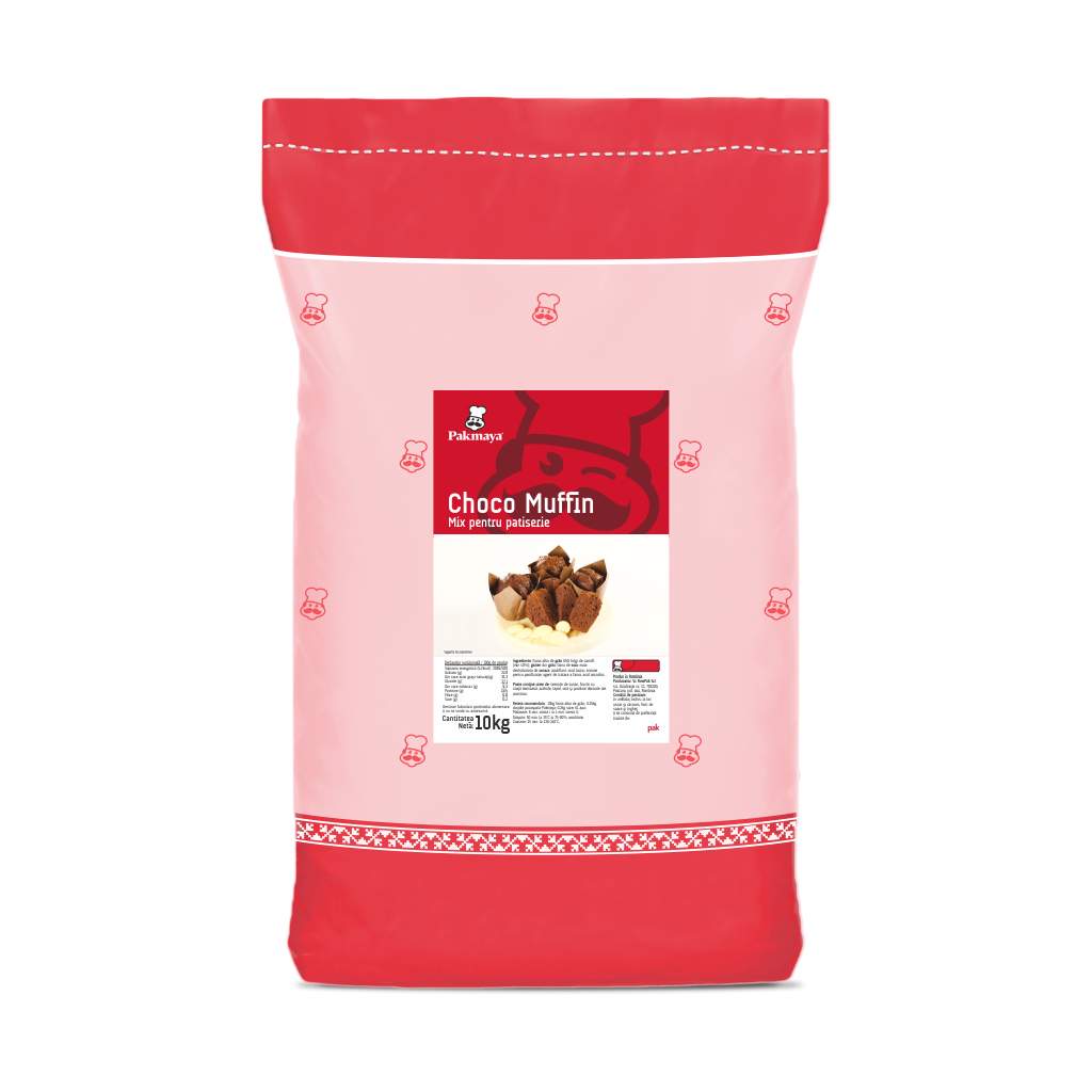 Mix Choco Muffin Mix profesional cu ou pudră, ideal pentru brioșe, cupcake-uri, mini checuri și alte prăjituri afânate. Asigură miez umed și catifelat, gust bogat de cacao și prospețime îndelungată, până la 30 de zile ambalat. Tolerează adaosuri diverse, precum fructe sau bucăți de ciocolată, și poate fi congelat. Dozaj recomandat: 1 kg mix, 300 ml ulei, 500 ml apă Ambalare: sac 10 kg