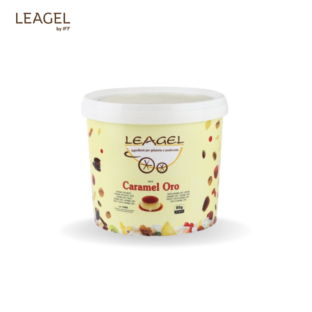Pastă Caramel Oro Pastă fină pentru un gelato cu aromă intensă de caramel, realizată din ingrediente de calitate superioară. Potrivită pentru gelaterie și cofetărie. Dozaj: 80 g / 1 kg bază Cod: 310805 Proces: la rece Ambalare: 3,5 kg