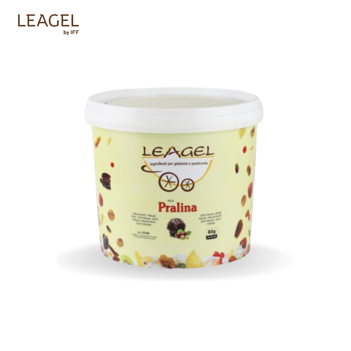 Pastă Praline Pastă cu gust de gianduia, îmbogățită cu granule crocante de alune de pădure, ideală pentru gelaterie și cofetărie. Dozaj: 80 g / 1 kg bază Cod: 212105 Proces: la rece Ambalare: 3,5 kg