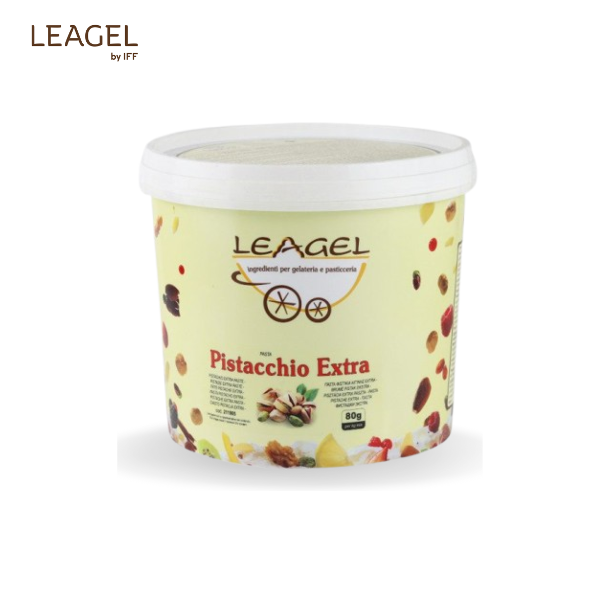 Pastă Extra Fistic Pastă aromată pe bază de fistic și migdale, colorată natural cu clorofilă, pentru un gust intens și echilibrat. Potrivită atât pentru înghețată artizanală, cât și pentru cofetărie. Dozaj: 80 g / 1 kg bază Cod: 211905 Proces: la rece Ambalare: 3,5 kg