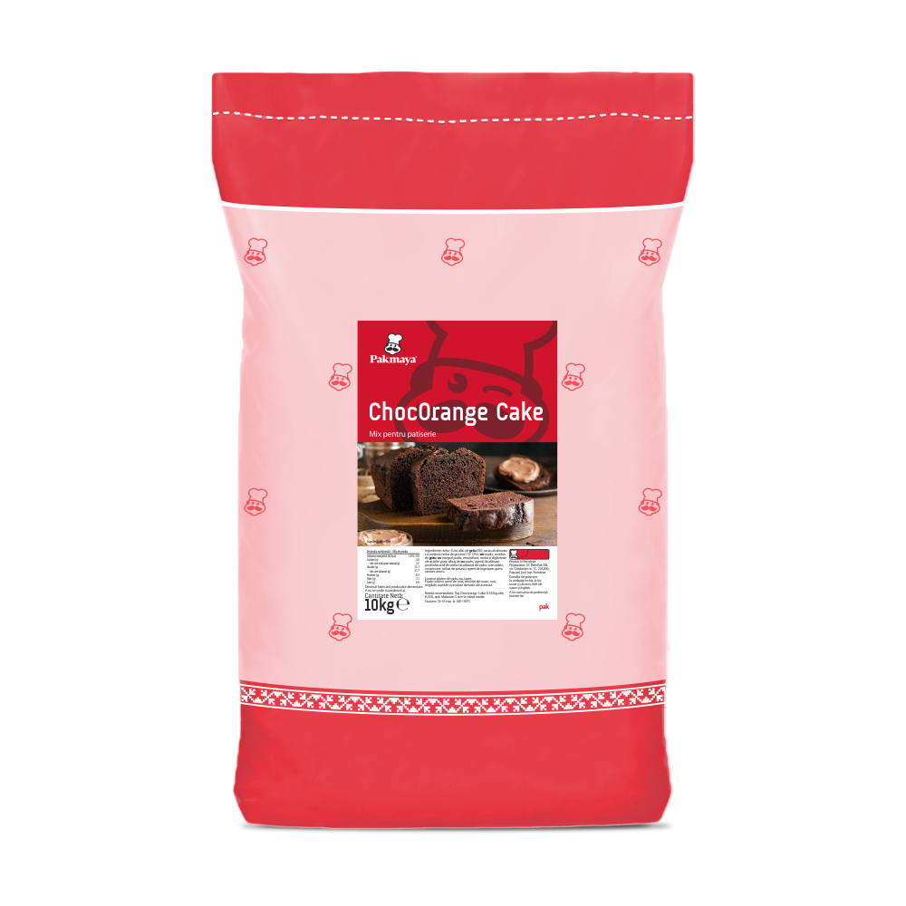 Mix ChocOrange Cake Mix profesional pentru prăjituri cu gust de ciocolată și portocală, cu textură umedă și uniformă. Versatil, ideal atât simplu, cât și în combinație cu diverse umpluturi sau decoruri. Asigură prospețime îndelungată, până la 30 de zile ambalat. Dozaj recomandat: 1 kg mix, 325 ml apă, 325 ml ulei Ambalare: sac 10 kg